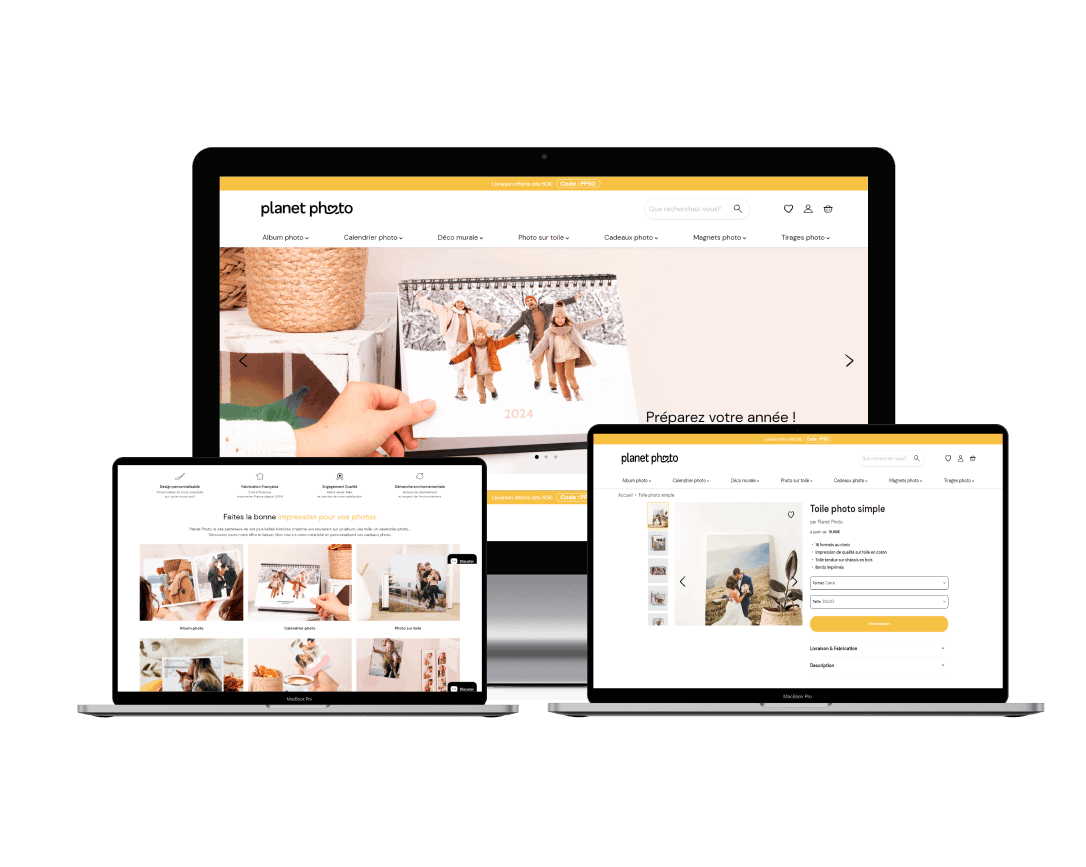 Résultats : une boutique e-commerce performante avec un catalogue produit optimisé, un parcours d'achat intelligent et des fonctionnalités d'upselling pour maximiser les ventes.
