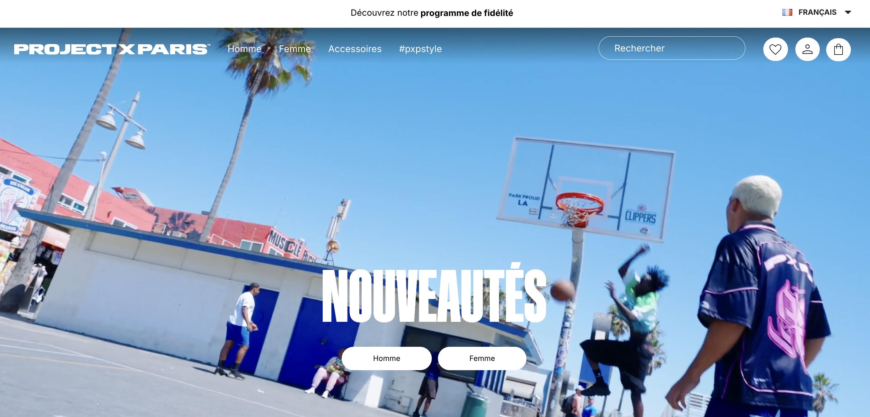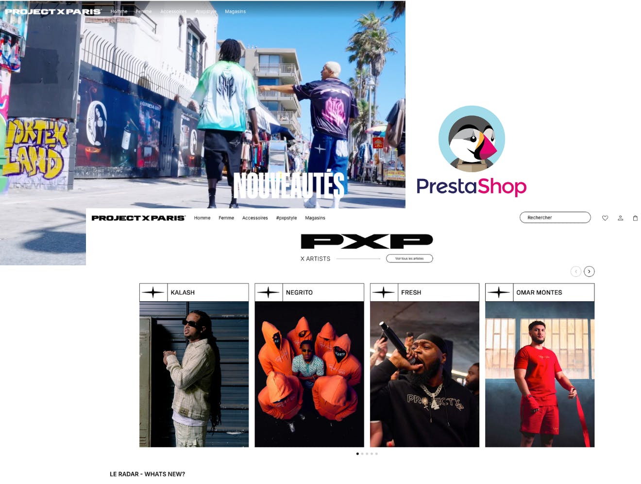 Nous assurons le développement et la maintenance du site e-commerce de Project X Paris, un spécialiste du vêtement streetwear, en nous appuyant sur notre expertise de la plateforme PrestaShop.