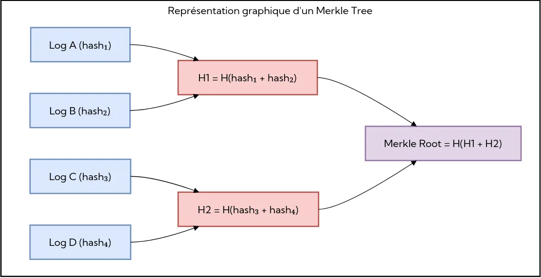 Le Merkle tree nous donne une racine unique qui représente l’état exact des logs à un instant T.