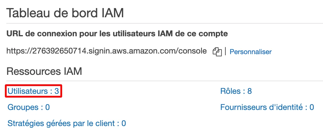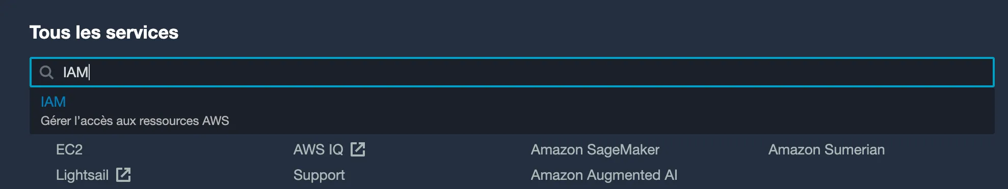 Changez de service (menu en haut à gauche) et rendez-vous dans le service "IAM".