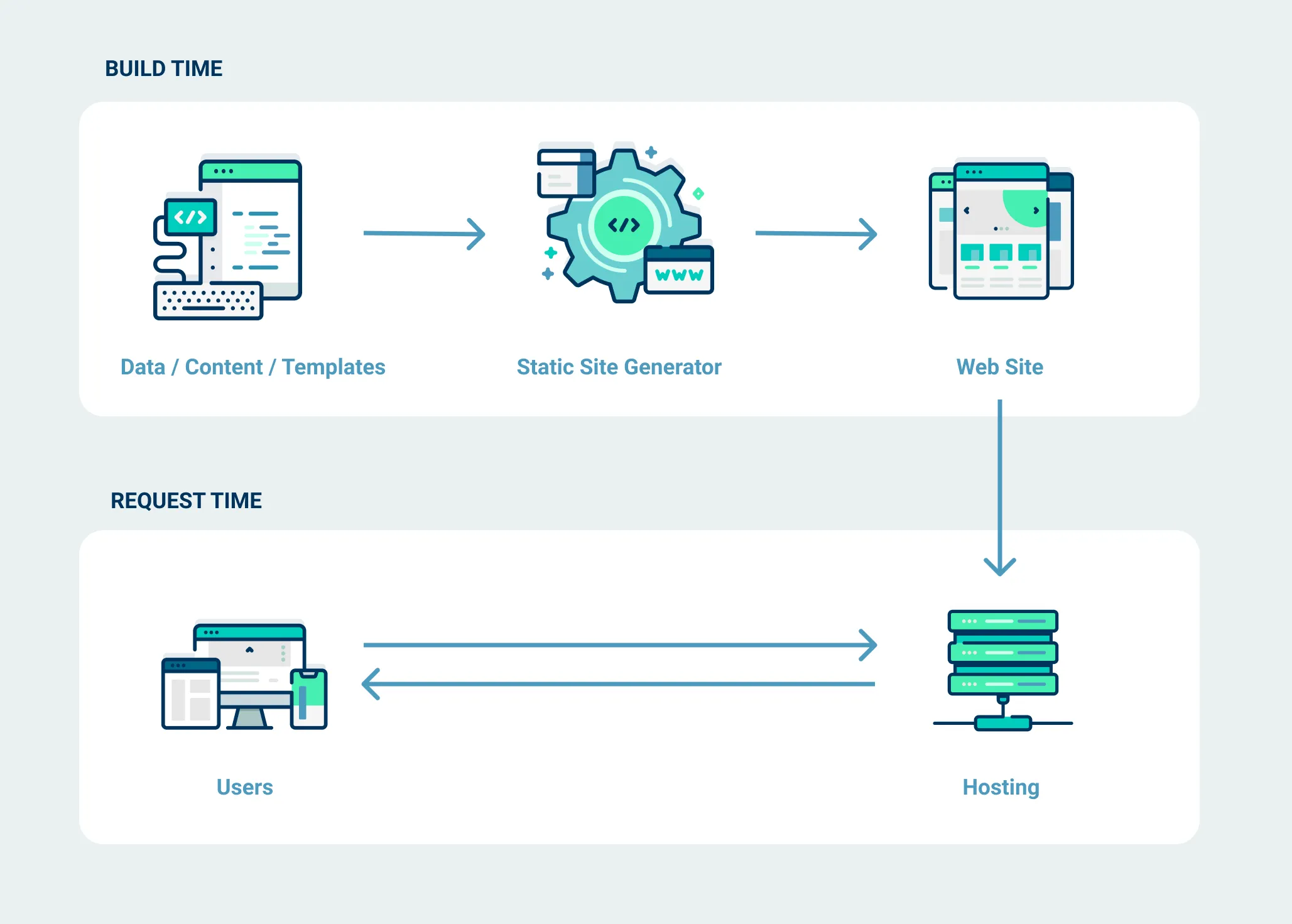 Pour mettre en place un site en architecture JAMStack, vous avez généralement besoin de 4 ingrédients :