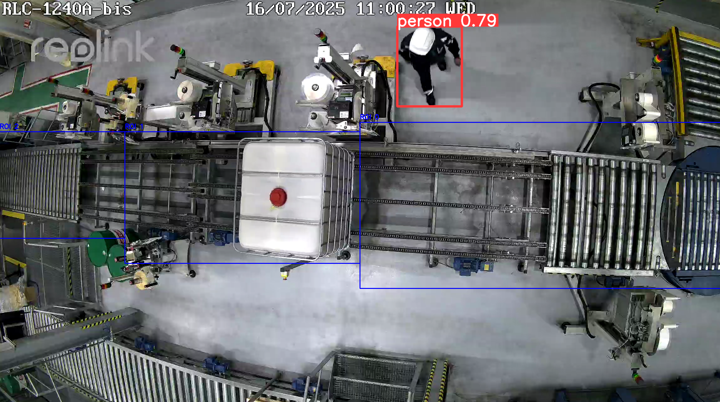 El objetivo era implementar un sistema de Visión por Computadora para supervisar una línea de envasado (llenado de barriles de aceite) y detectar cualquier intrusión humana en tiempo real.